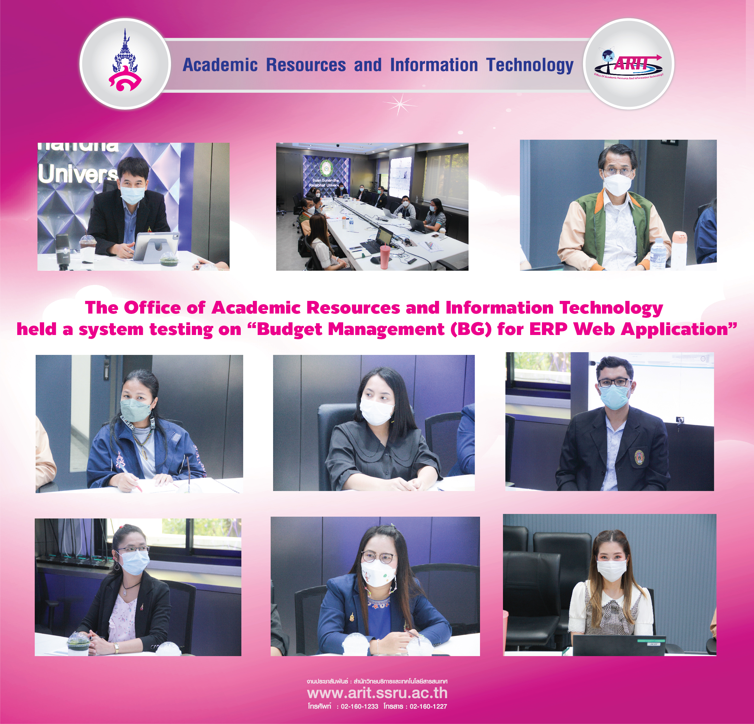 2nd March 2023. The Office of Academic Resources and Information Technology by Assistant Professor Dr. Sirilak Ketchaya, Director, assigned Ms. Waraporn Naraprasertwong, a Computer Technical Officer in the Information System Development Department organized system testing on the “Budget Management (BG) for ERP Web Application” with the Treasury and the Policy and Planning Division, by Mr. Sonthaya Charoensiri, Director of the Policy and Planning Division, Mr. Montri Sairojrung, Director of the Finance Division, and personnel responsible at the Academic Resource and Information Technology Conference Room