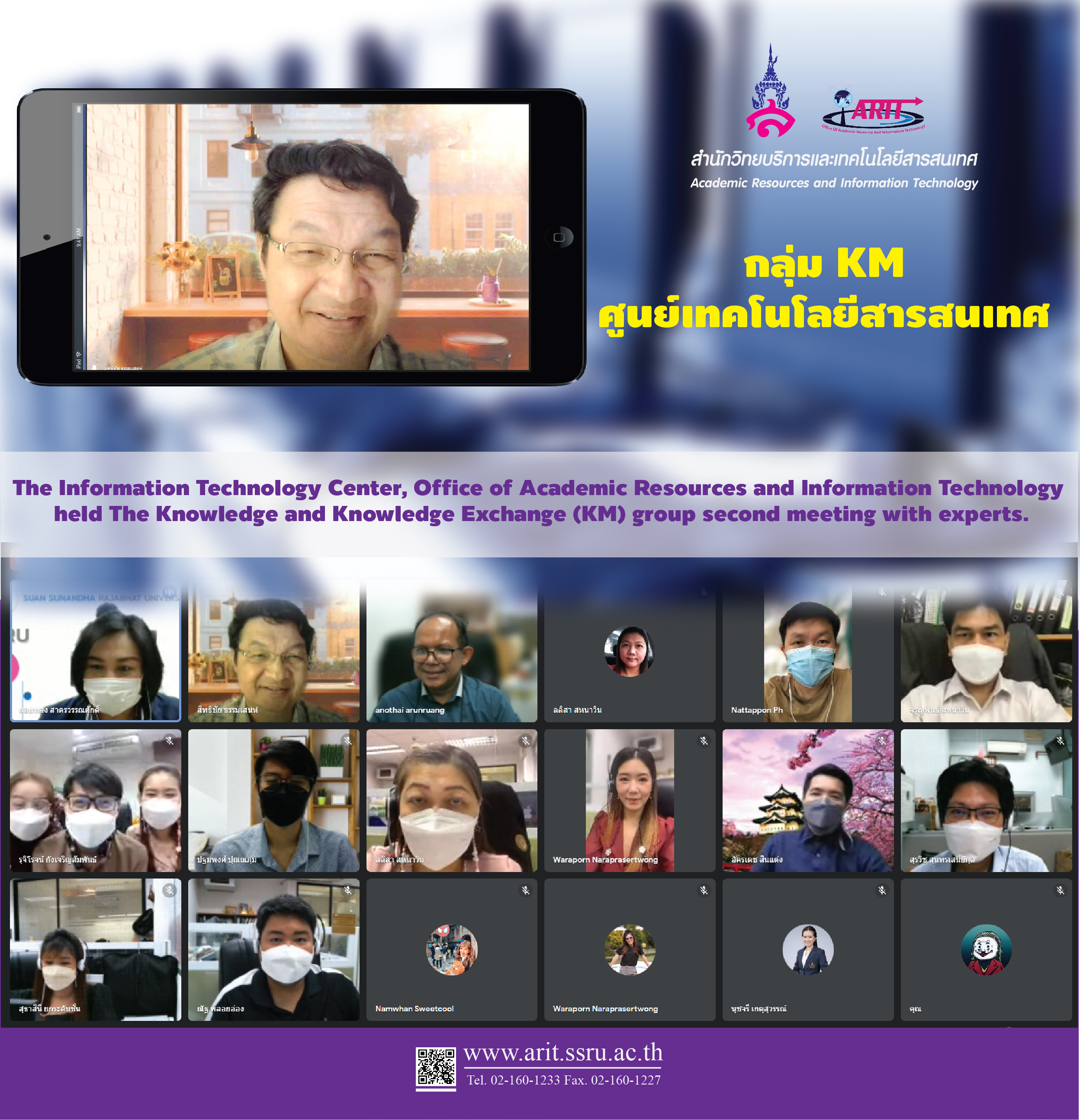 9th June 2022. The Information Technology Center, Office of Academic Resources and Information Technology organized the 2nd meeting of the Knowledge and Knowledge Exchange (KM) group with experts. The Information Technology (IT) Management Group, IT Knowledge subgroup met Assistant Professor Dr. Sittichai Thamsane, a KM expert in the topic "Applying Google workspace teaching and learning to support teaching and learning for full-time teachers of Suan Sunandha Rajabhat University" to listen to suggestions and present the group's learning exchange operations in online format via Google Meet.