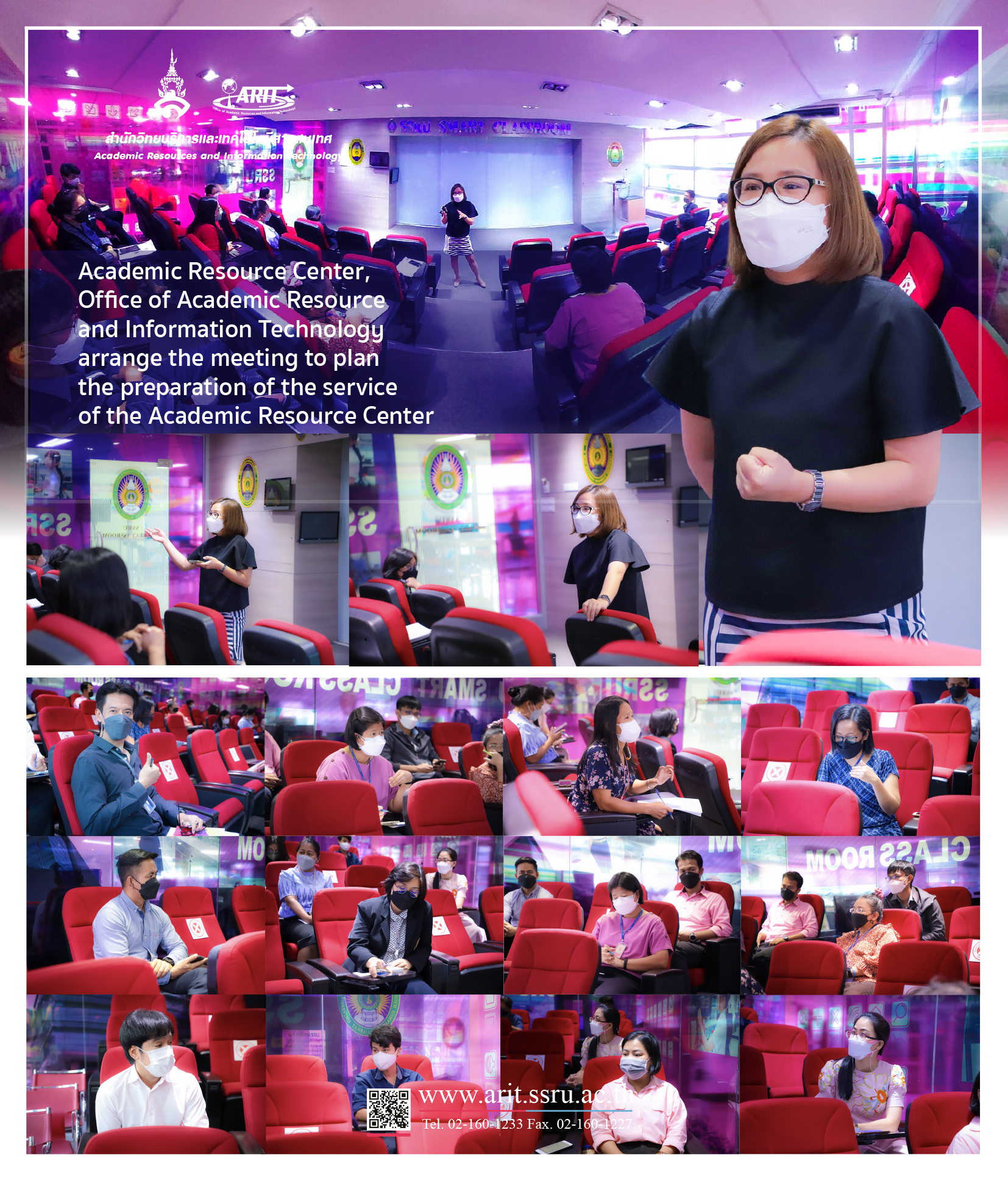 17th May 2022, Academic Resource Center, Office of Academic Resource and Information Technology arrange the meeting to planning and monitoring the operation of the Academic Resource Center’s staff. Led by Dr.Pimploi Tirastittam, Deputy Director of Academic Resource Center, at SSUR Smart Classroom, Floor 2, Academic Resource Center.