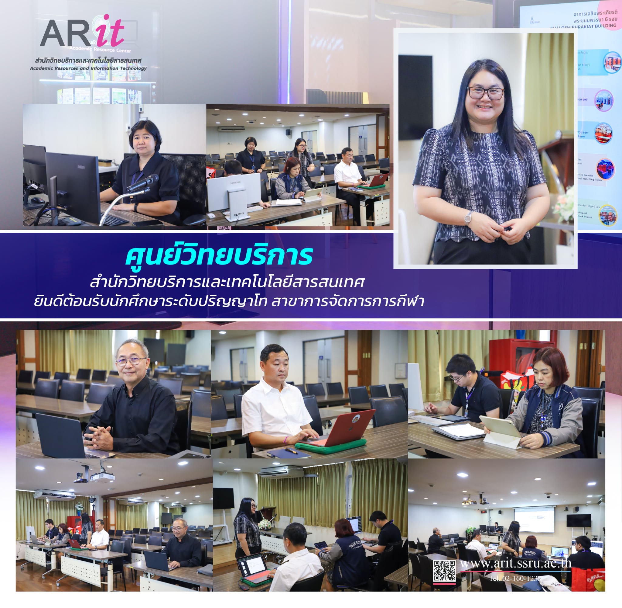 วันที่ 5 พฤศจิกายน 2568 ศูนย์วิทยบริการ สำนักวิทยบริการและเทคโนโลยีสารสนเทศ นำโดย อาจารย์เบญญา หวังมหาพร รองผู้อำนวยการศูนย์วิทยบริการ พร้อมด้วย นางสาวกฤษณา อยู่พวง หัวหน้าฝ่ายจัดการสารสนเทศและเทคโนโลยี ให้การต้อนรับนักศึกษาระดับปริญญาโท สาขาการจัดการการกีฬา ในการอบรมเชิงปฏิบัติการเรื่อง “การใช้บริการสารสนเทศและเทคนิคการสืบค้นข้อมูลทางวิชาการ”