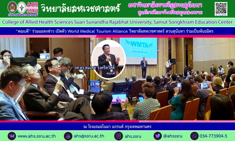 "คณบดี" ร่วมแถลงข่าว เปิดตัว World Medical Tourism Alliance วิทยาลัยสหเวชศาสตร์ สวนสุนันทา ร่วมเป็นพันธมิตร