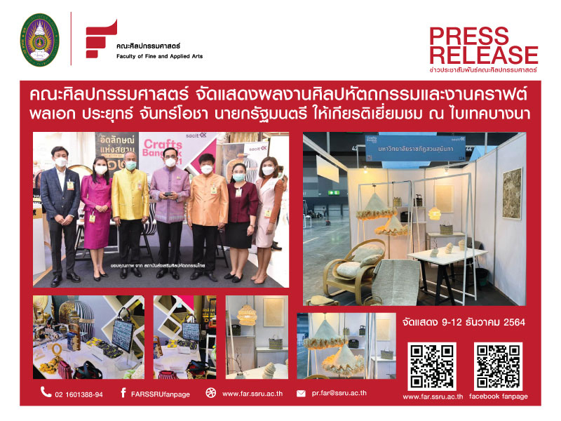 สาขาวิชาการออกแบบแฟชั่นและสินค้าไลฟ์สไตล์ คณะศิลปกรรมศาสตร์ ตัวแทนมหาวิทยาลัยราชภัฏสวนสุนันทาได้รับเชิญให้ร่วมแสดงผลงานหัตถศิลป์ไทยและงานคราฟต์ร่วมสมัย “งานอัตลักษณ์แห่งสยาม ครั้งที่ 12” และ “งาน Crafts Bangkok 2021”