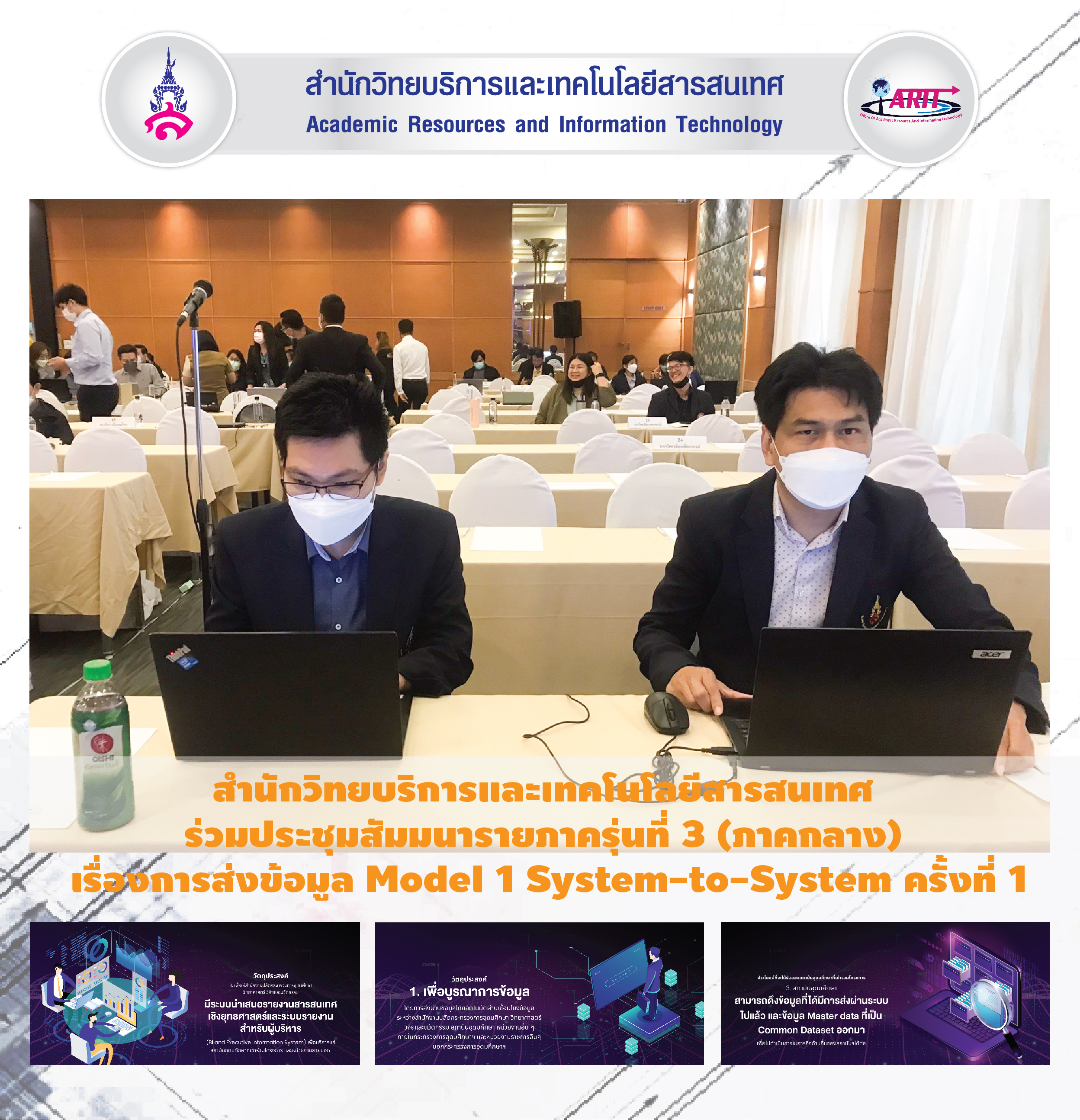 วันที่ 14 ธันวาคม 2565 สำนักวิทยบริการและเทคโนโลยีสารสนเทศ โดย ผู้ช่วยศาสตราจารย์ ดร.ศิริลักษณ์ เกตุฉาย ผู้อำนวยการสำนักวิทยบริการและเทคโนโลยีสารสนเทศ มอบหมายให้ นายจรูญพันธ์ สหนาวิน นักวิชาการคอมพิวเตอร์ชำนาญการ นายสุรวิช สุนทรเสนีย์กุล นักวิชาการคอมพิวเตอร์ เข้าประชุมสัมมนารายภาครุ่นที่ 3 (ภาคกลาง) เรื่องการส่งข้อมูล Model 1 System-to-System ครั้งที่ 1 เพื่อทำความเข้าใจและรับทราบปัญหา สำหรับสถาบันที่ยังไม่มีความพร้อมในการส่งแบบ system เพื่อนำมาวิเคราะห์หาแนวทางแก้ไข ให้สามารถส่งข้อมูลในรูปแบบ system-to-system ได้ รวมไปถึงการทดลองติดตั้ง Container เพื่อทดสอบเบื้องต้น ภายใต้โครงการจ้างพัฒนาระบบการเชื่อมโยงข้อมูลขนาดใหญ่ (Big Data) และระบบคลังข้อมูลเพิ่มรองรับนโยบายด้านการอุดมศึกษา ซึ่งจัดโดยสํานักงานปลัดกระทรวงการอุดมศึกษา วิทยาศาสตร์ วิจัยและนวัตกรรม (สป. อว.) ในระหว่างวันที่ 14 – 15 ธันวาคม 2565 ณ ห้องปิ่นเกล้า 2 ชั้น 9 The Royal City Hotel