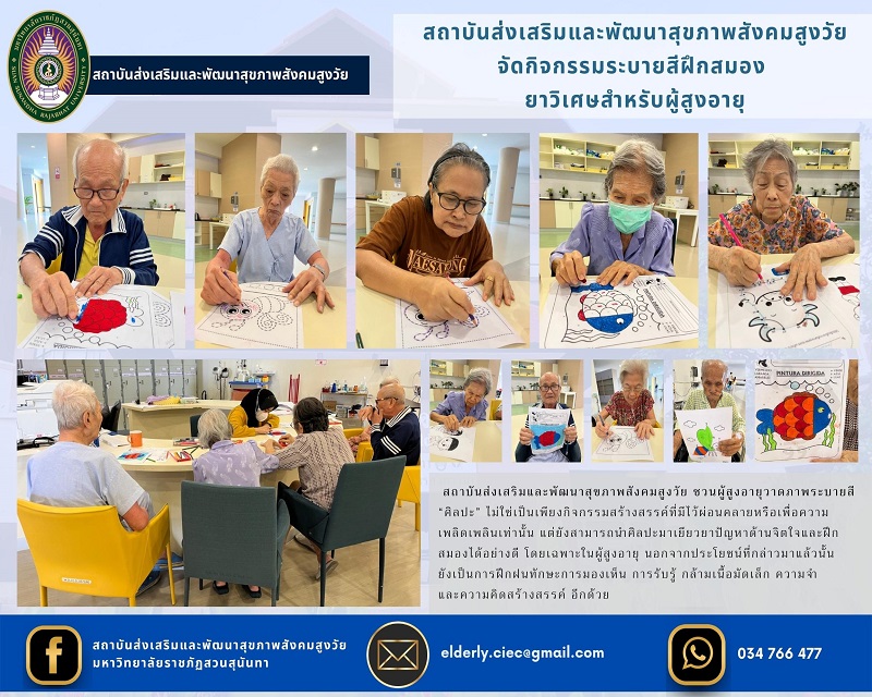สถาบันส่งเสริมและพัฒนาสุขภาพสูงวัย จัดกิจกรรมระบายสีฝึกสมองยาวิเศษสำหรับผู้สูงอายุ
