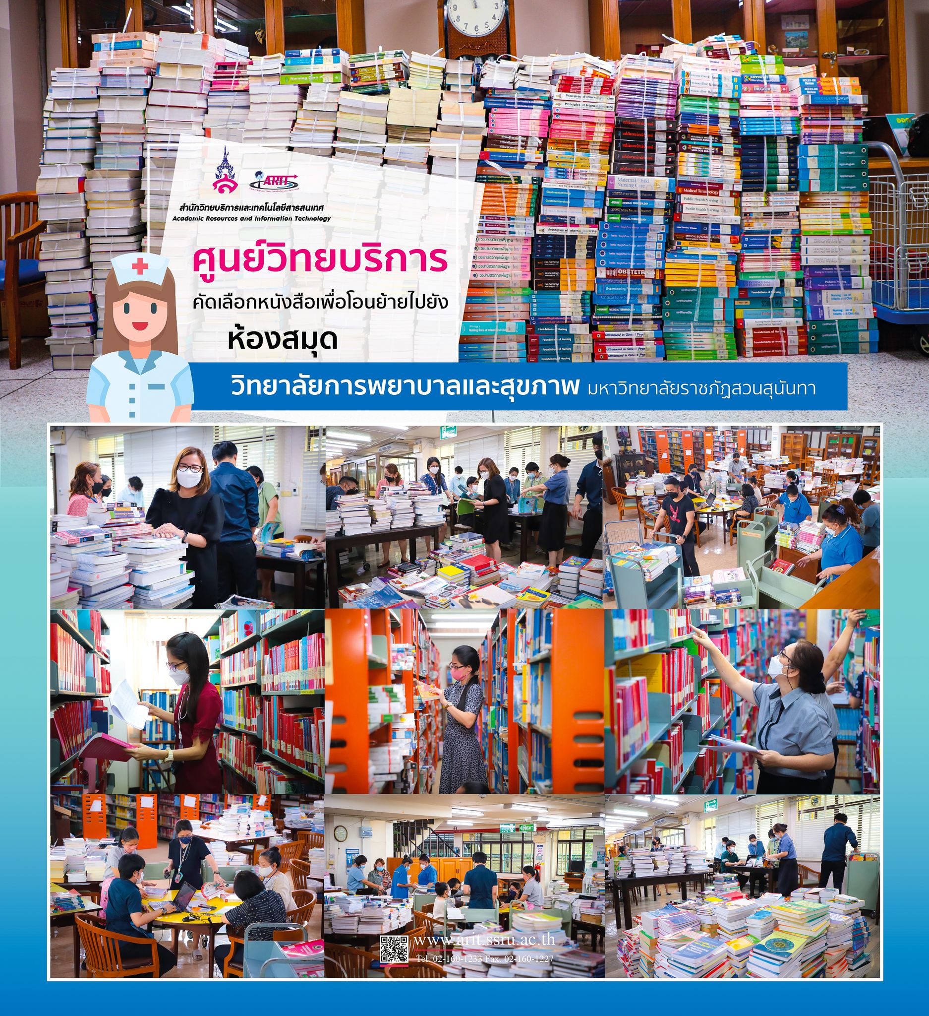 คัดเลือกหนังสือเพื่อโอนย้ายไปยังห้องสมุดวิทยาลัยพยาบาลและสุขภาพ
