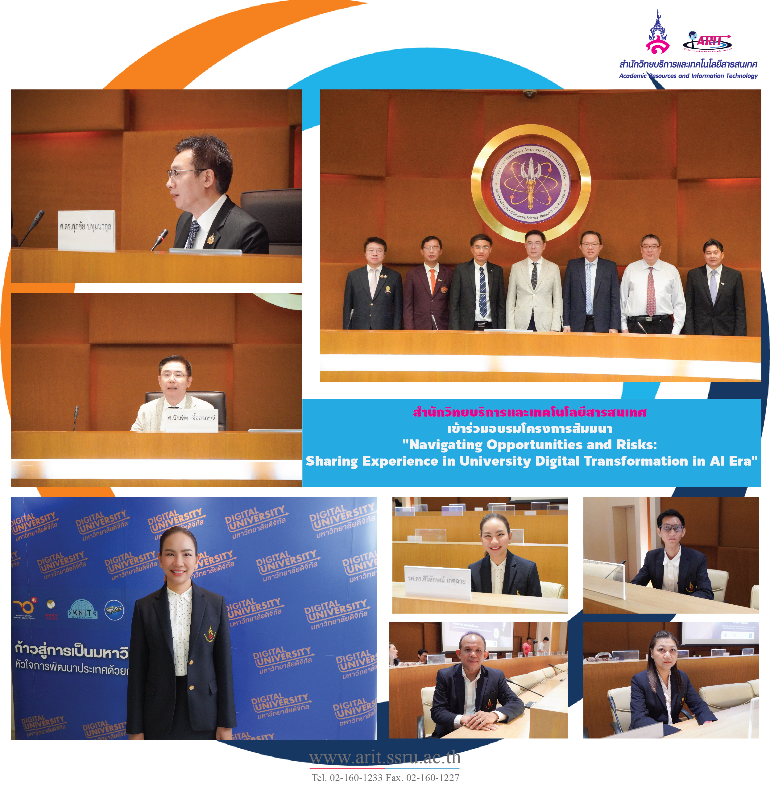 วันที่ 20 ธันวาคม 2567 สำนักวิทยบริการและเทคโนโลยีสารสนเทศ นำโดย รองศาสตราจารย์ ดร.ศิริลักษณ์ เกตุฉาย รองอธิการบดีฝ่ายเทคโนโลยีดิจิทัล พร้อมด้วย อาจารย์ ดร.อภิรักษ์ ธิตินฤมิต รองผู้อำนวยการศูนย์เทคโนโลยีสารสนเทศ และนายอโณทัย อรุณเรือง หัวหน้าฝ่ายเครือข่ายและอินเทอร์เน็ต ได้รับเชิญจากสถาบันคลังสมองของชาติ ร่วมกับ ศูนย์บริหารความเสี่ยง จุฬาลงกรณ์ สกสว เข้าร่วมอบรมโครงการสัมมนา "Navigating Opportunities and Risks: Sharing Experience in University Digital Transformation in AI Era"
