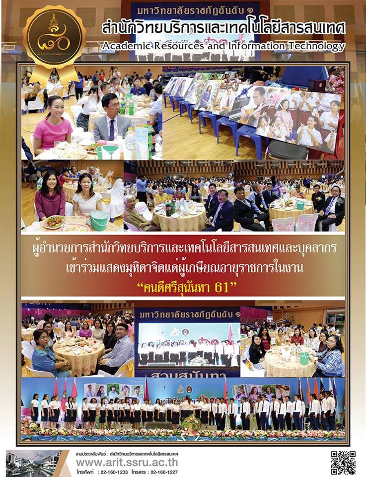 ผู้อำนวยการสำนักวิทยบริการและเทคโนโลยีสารสนเทศและบุคลากร เข้าร่วมแสดงมุทิตาจิตแด่ผู้เกษียณอายุราชการในงาน "คนดีศรีสุนันทา 61"