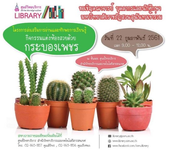 > โครงการส่งเสริมการอ่านและทักษะการเรียนรู้กิจกรรมแต่งห้องสวยด้วยกระบองเพชร