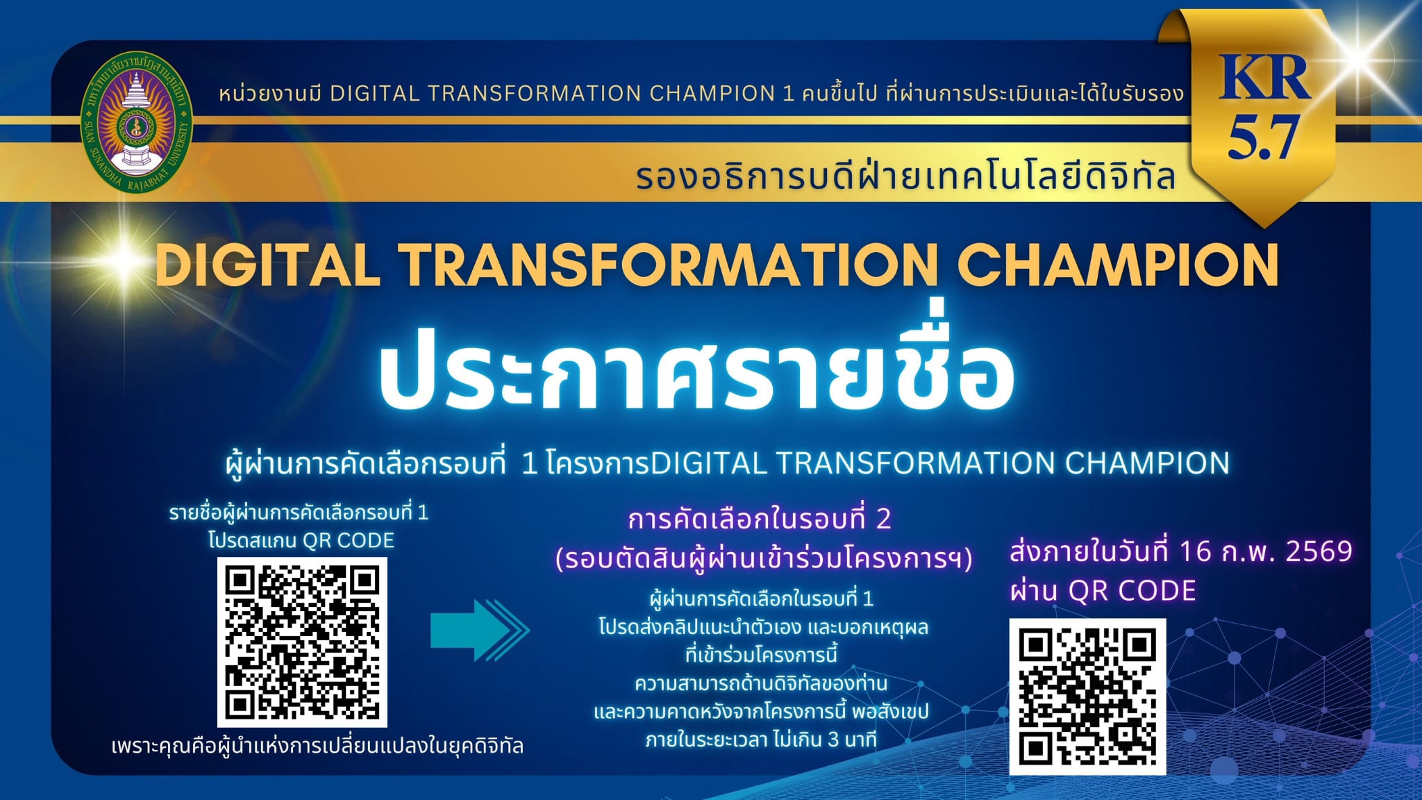 > ประกาศรายชื่อผู้ผ่านการคัดลือกรอบที่ 1 โครงการ Digital Tranformation Champion