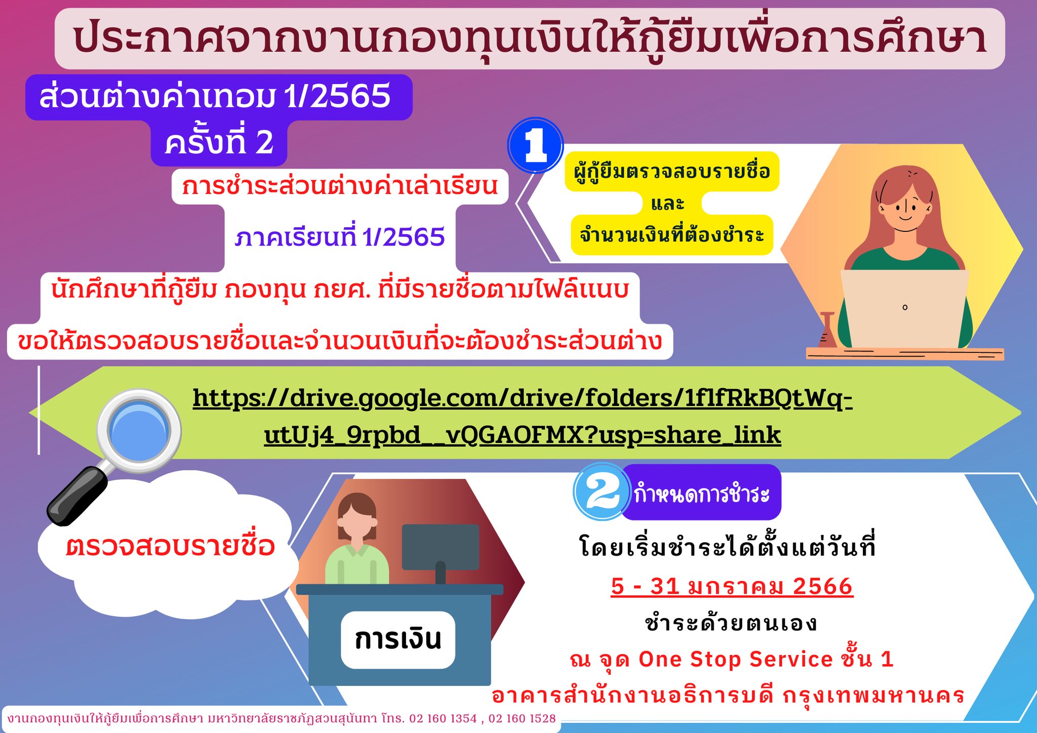 #ส่วนต่างค่าเทอม 1/2565 ครั้งที่ 2