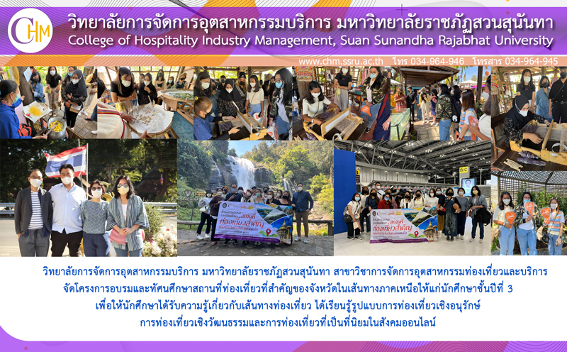 > วิทยาลัยการจัดการอุตสาหกรรมบริหาร สาขาวิชาการจัดการอุตสาหกรรมท่องเที่ยวและบริการจัดโครงการอบรมและทัศนศึกษาสถานที่ท่องเที่ยวที่สำคัญของจังหวัดในเส้นทางภาคเหนือ