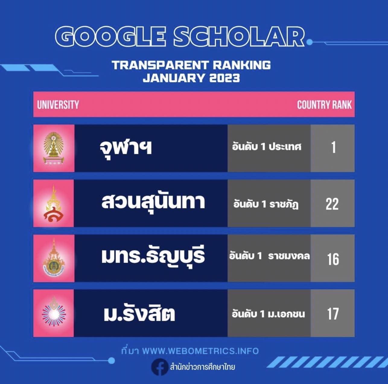 Google Scholar JANUARY 2023 (version 15.0) ประกาศผลการจัดอันดับมหาวิทยาลัยที่มีการ citations ใน google scholar สูงที่สุด